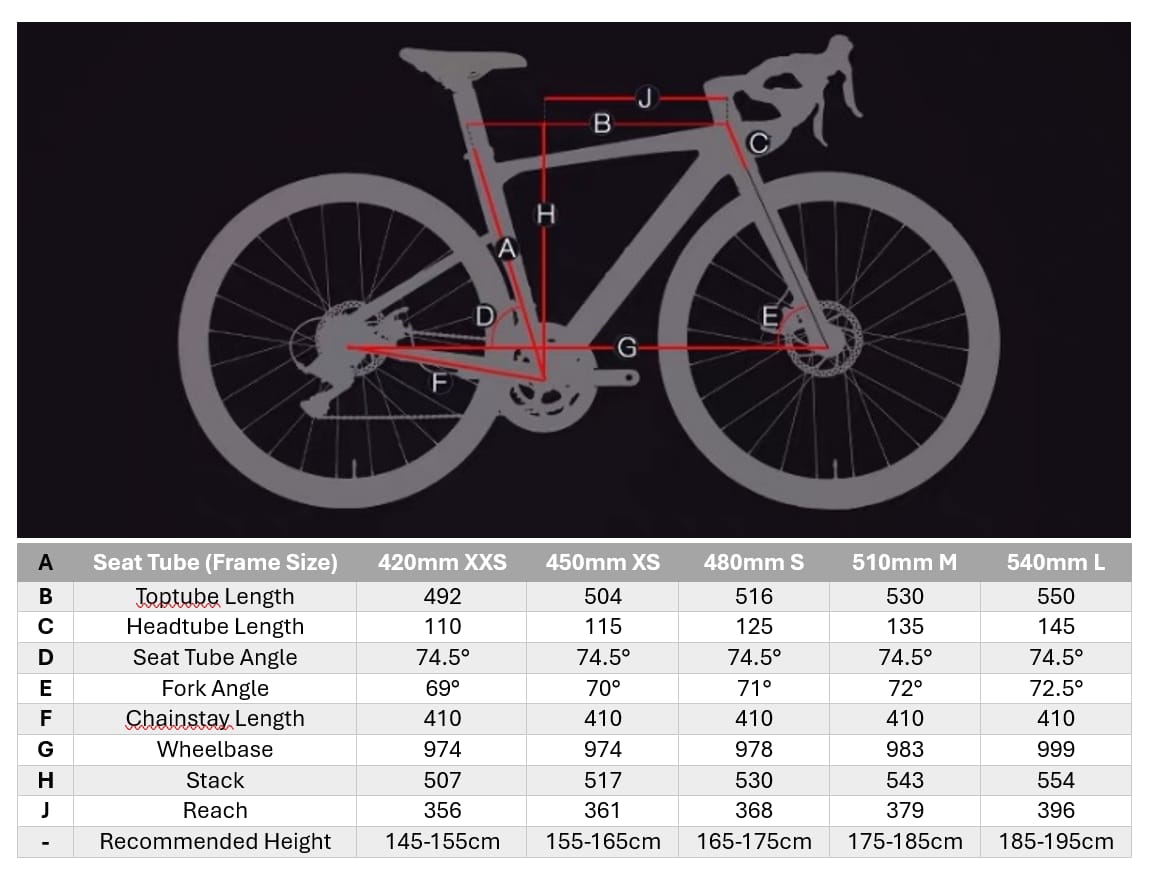 Frame Size: 45cm, 48cm, 51cm, 54cm