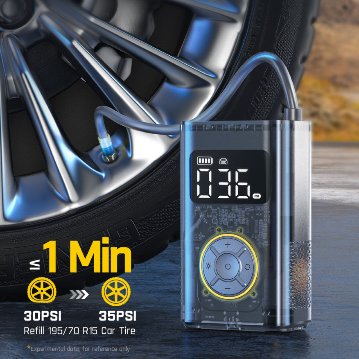 The Fanttik X9 Pro needs only 27s to refill a standard motorcycle tire (28➡35PSI). It can reach a versatile maximum inflation pressure of 150psi, suitable for motorcycles, compact cars, bicycles, balls, and other inflatables.