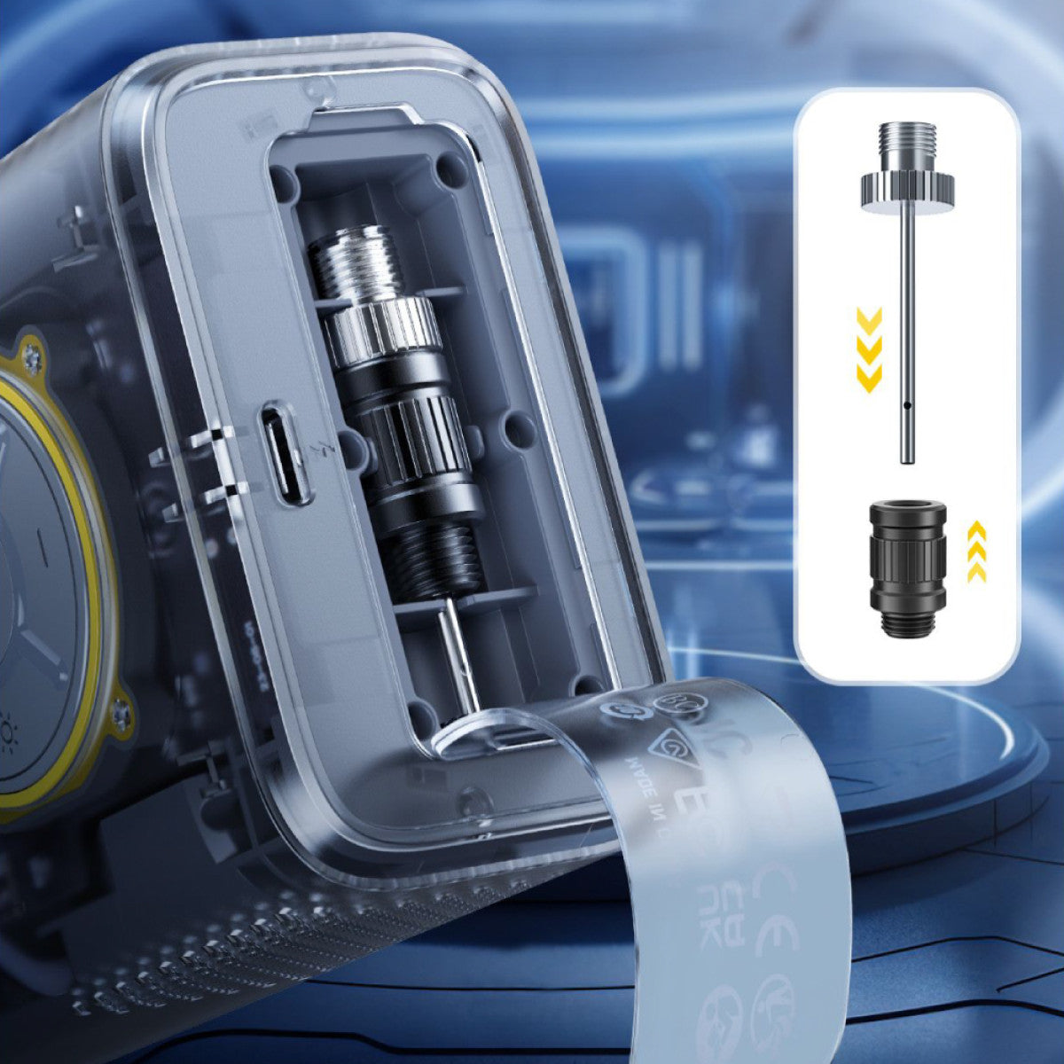 No more fussing with hose installations on the X9 Pro! All you need to do is pull out the yellow end of the hose to activate it and simply push it back into the inflator’s body to turn it off. What’s more, if left unused for 3 minutes, it will automatically shut down, preventing accidental activations, and ensuring a safer user experience.