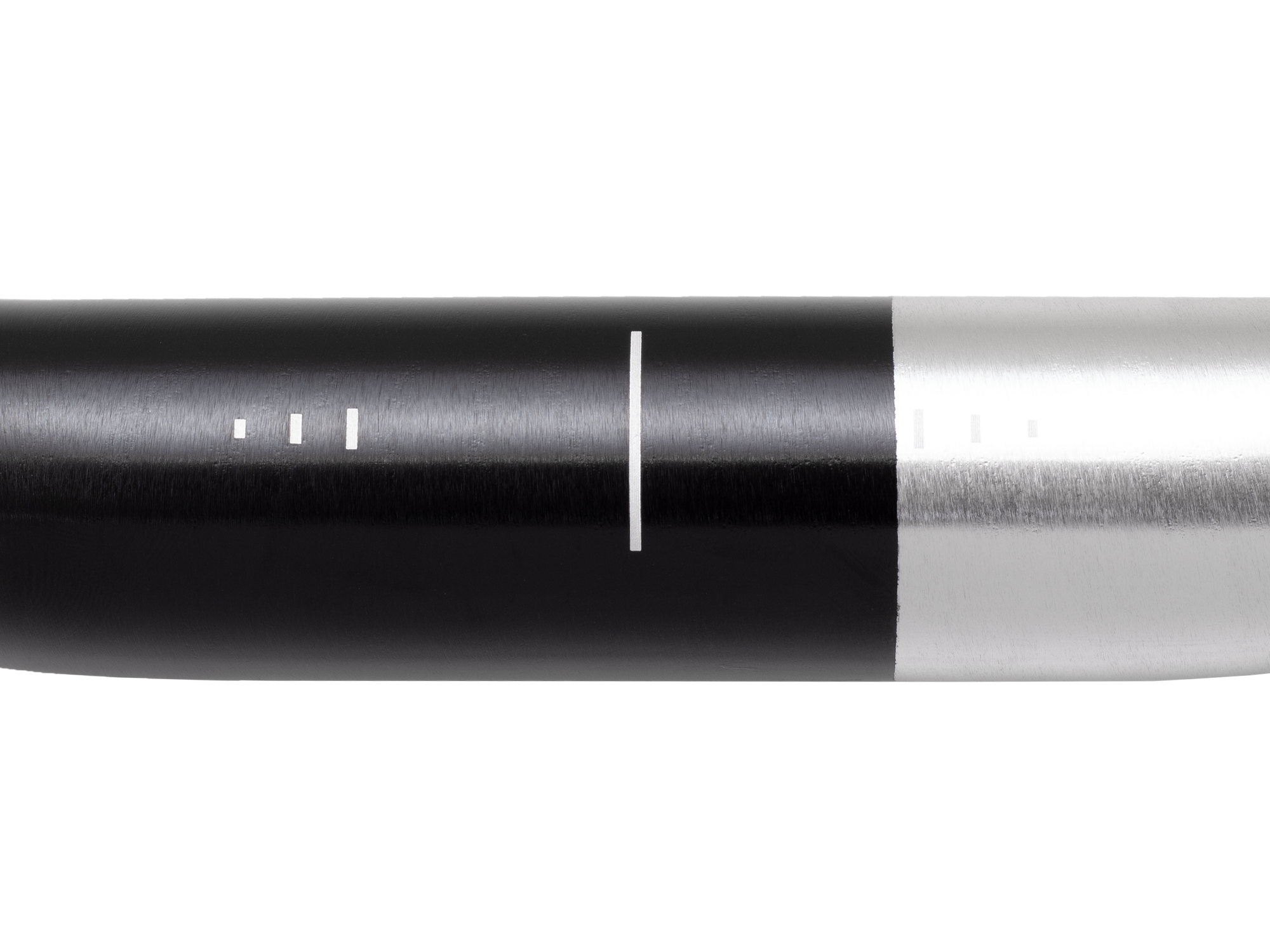 The finished butted and shaped handlebars are first brushed by hand. The handlebars are then anodised silver. The handlebars are then covered on one side and anodized black on the other. Only then are logos and laser etchings are applied . The result is an unmistakable eye-catching silver/black finish.