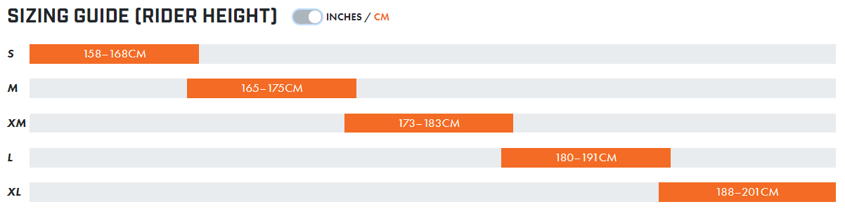 In order to place every size rider in the same position over the rear wheel, the HD’s seat tube angles get steeper as frame size increases. With four sizes, this would have resulted in larger jumps in reach, so we added a fifth size. The smaller increments across five sizes means that you can find just the right size. We encourage riders to choose their bike size based on their desired reach and top tube measurements.