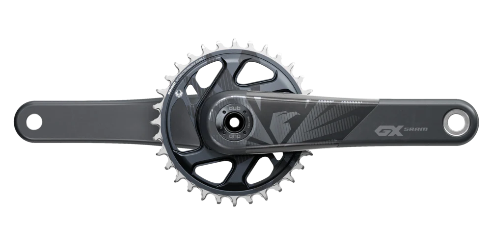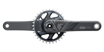 The SRAM carbon GX Eagle crankset delivers consistent performance every time out. Featuring SRAM's X-SYNC 2 tooth profile chainring, the Carbon GX crankset is engineered for complete chain control. Each tooth's thickness is precisely toleranced and controlled to work seamlessly with the chain's inner and outer links. DUB technology features a better-engineered bottom bracket and a new spindle design. Together, these allow for a more uniform approach to bottom bracket fitment, better sealing against contamination and forward and backward compatibility. Now everyone can benefit from a new measure of durability.