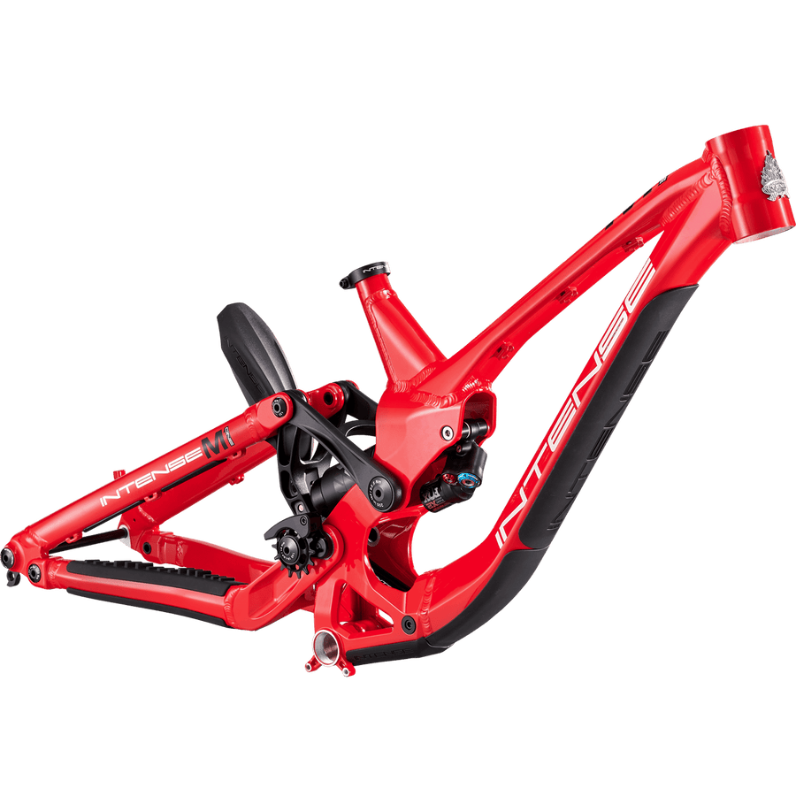 The new INTENSE M1 has 202mm (linear) / 212mm (progressive) of rear travel, 279 mixed wheels, and is built around a 6-link, high-pivot, 6061-T6 aluminum frame. The M1 is a race-proven winner. Designed, developed, and perfected by our engineers and the INTENSE Factory Racing team on the World Cup circuit to be the fastest downhill bike.