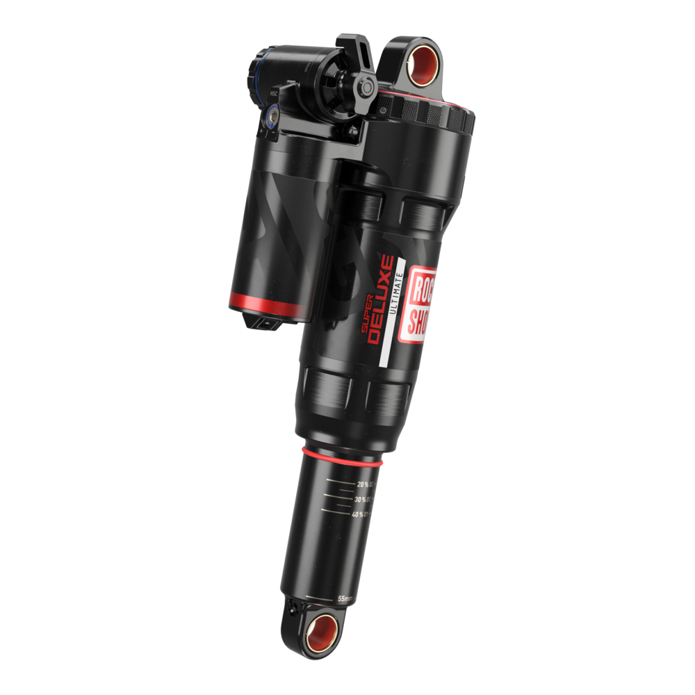 Give your all-day trail bike the firepower it needs for rugged terrain, plus the efficiency to climb back up for more. Super Deluxe Ultimate is a race-proven, award-winning rear shock that keeps getting better. The latest generation has decreased High-Speed Compression damping to devour the downhills. The proven RC2T damper contains an arsenal of suspension tuning settings for any rider or trail. Independently adjust High and Low Speed Compression or reach for the Threshold lever if you need pedaling efficiency. Pure all-mountain performance starts and finishes with Super Deluxe.