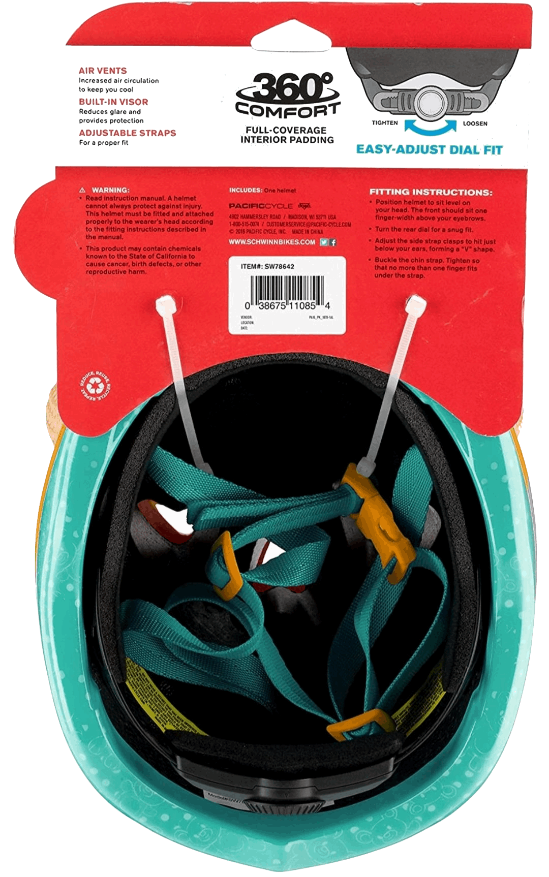 Nothing is more important than the safety of your little one, and along with that comes teaching your children good safety habits. The younger you can teach those habits, the better. So why not start with this adorable owls toddler bike helmet from Schwinn you'll feel great knowing your child's noggin is protected, and they're sure to love the cute owl graphics and hearts that dance across the helmet. The adjustable dial fit system offers 360˚ adjustability for the perfect fit, while the lower molded shell design adds durability and extra protection in the rear. The integrated visor offers extra sun protection and the 10 airflow vents keep little heads cool on hot summer days. This Schwinn helmet is CPSC approved and designed for toddler up to 3 years. Enjoy the freedom of riding with Schwinn.